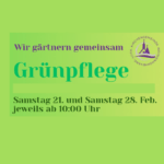 - Gemeinsam GärtnernAm Samstag, den 21. Februar und Samstag, den 28. Februar gärtnern wir ab 10 Uhr gemeinsam an der Kirche Zum guten Hirten und im Augustana… Weiterlesen »Gemeinsam Gärtnern